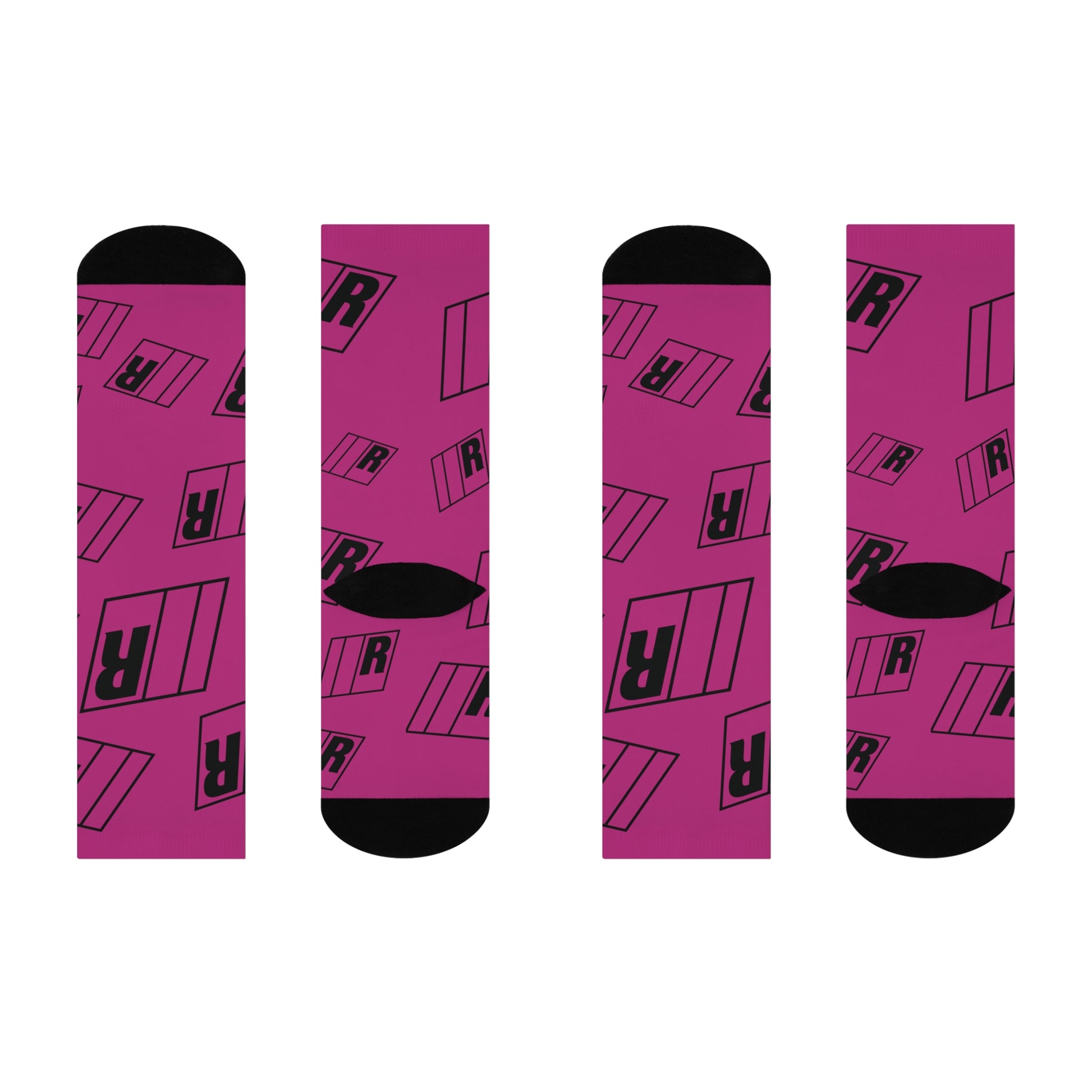 These cushioned DTG crew socks are a one-size style designed with both function and appearance in mind. With the fully cushioned heel-to-toe, these socks provide superior comfort, while the DTG print process allows for ultra-crisp, crease-free printing. Composed of 73% polyester, 18% nylon, 6% spandex, and 3% cotton, these socks are an elevated alternative to the typical sublimation sock and provide a clean, comfortable base for your all-over print designs.
